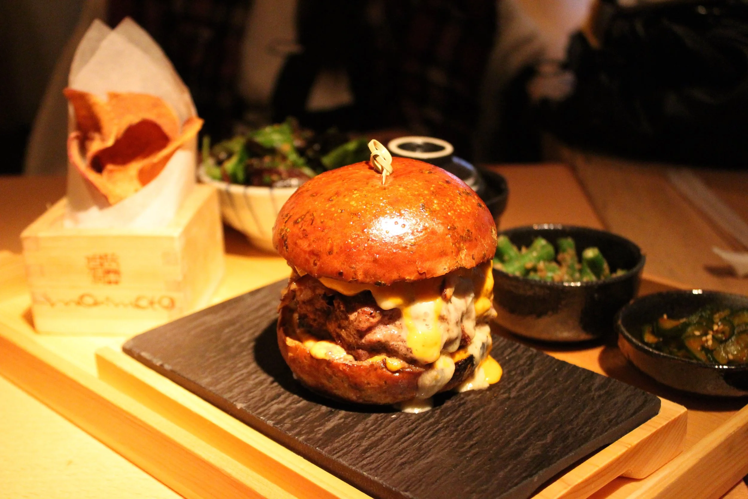 My friend ordered the Morimoto dry aged burger. It came with a miso-russian dressing, sake kasu soba ale cheese, soy-ginger shiitakes, house-made nori bun, and soy salt and vinegar Japanese sweet potato chips. Good choice, Dana. Although, I haven't tried this burger myself, I do want to explain sake kasu soba ale cheese. Sake kasu is the leftover yeast by-product from the sake making process. It has a fermented scent and is somewhat sweet in taste. This ingredient is important in the bohemian dining/cooking scene.
